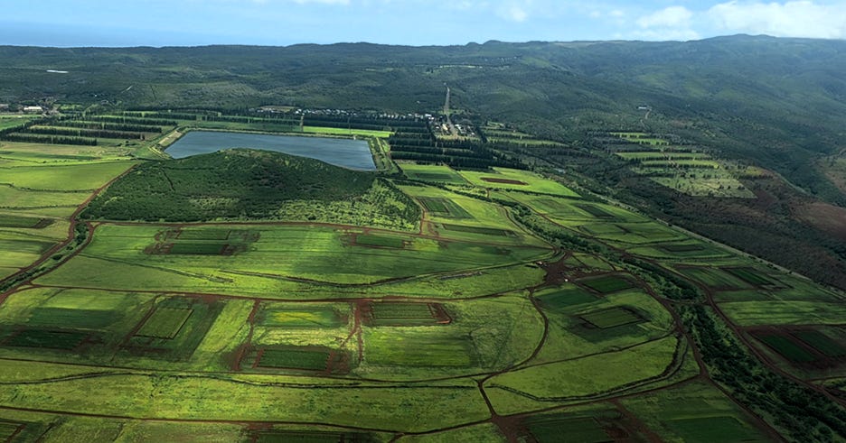 Plenty of evidence exists that the island previously used what was known as the Kohela Field System (1450 – 1800) to feed 20,000 – 30,000 people. This history defies the colonial narrative of Hawaii as small and primitive. (Jamie Helmick, Ulu,Ulu; 2024)