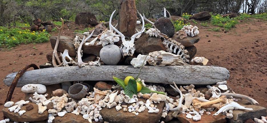 [This may be an example Mālama Pū‘olo, the caring for and keeping of sacred items. Arrangements like this were found on hikes. Photo by njhess]