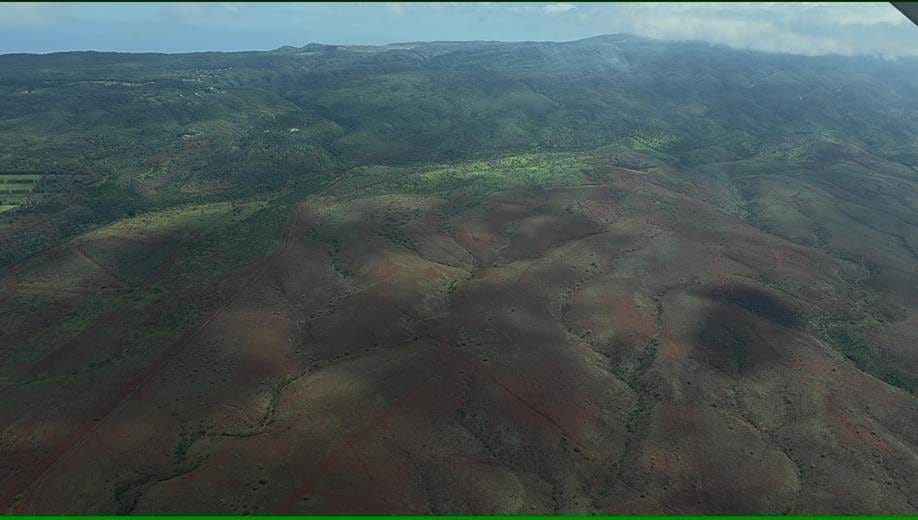 [This area of Molokai, close to the center, was taken shortly after takeoff. Notice the beauty of the smallness of the farms, also the rich red soil that outlines the properties. Photo by njhess]